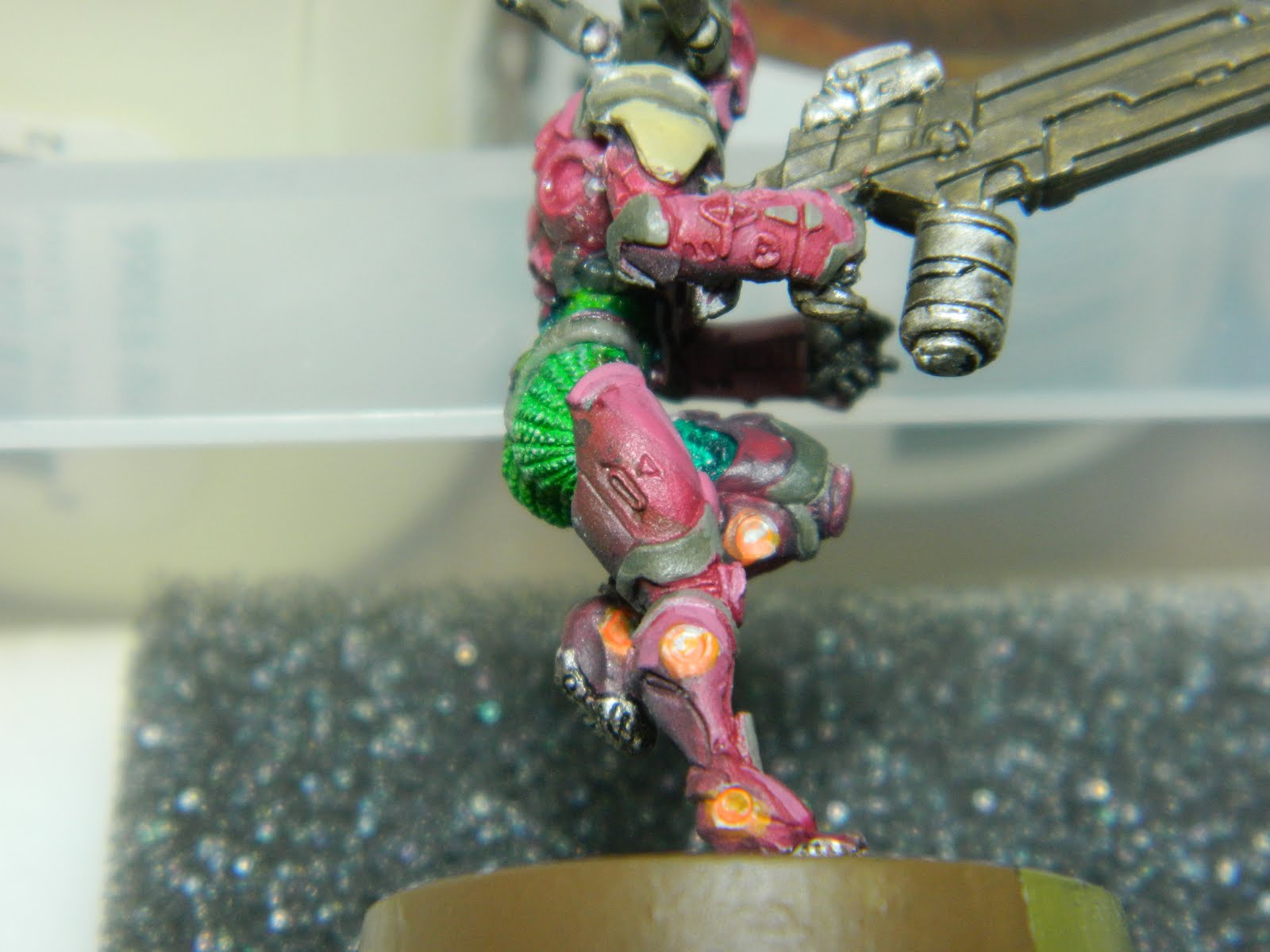Hello all! Journeyman For my first post I thought I'd go over my newly discovered paint scheme: PP Sanguine. The guide to painting it is in the Forces of Warmachine: Protectorate of Menoth. I have to say, I love it! The Sanguine Base always goes on nice and smooth and only takes a couple coats to get a good base. Here's where I first used the color: This here is good ol' Bartolo Montador, Mercenary Privateer Warcaster. The blending from the shading to highlights is a little bit rough, but I was expecting that, my first time trying out the scheme and all. My second time using this scheme was this chick, a Swiss Guard HMG from Infinity My favorite part about this model is her right thigh, shown here. Here, I did my best to get an almost natural advancement from shadow to highlight. Out of the three times I've used Sanguine on the model, the usage here on the Swiss Guard has been my absolute favorite. Coming in a close second is Epic Caine, Cygnar Warcaster: He's still a WIP, but I'm really enjoying where I'm taking him. The Sanguine looks great, and I picked a great second color for the jacket lining (PP Hammerfall Khaki). The stones are a bit too bright , so I'm going to be doing some drybrushing to make it look more like they're coming from a recently wrecked building. In closing, PP Sanguine is a great color that can add a little variety to regular factory schemes, or add that little touch that makes the model just pop. So far I've only used it on three models, but you may find it just might be all I use across the board! Overall, a great color, one that I will definitely be using more of in the future.