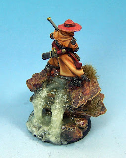 Well I have had Kell done for a little while. I have already sent it to Clash for a Cure to be given away. When I first started doing this fig I decided I wanted to try a water fall that split. So I clipped him from his metal bits on his feet and just left a little to use on the base. I used slate for the rocks and filled in the gaps. When I painted to rocks I asked some painting pals what I should do. That is where the purple hew for the rocks came from. Turned out better than I thought considering I had never done that color combo before. When I did the waterfall I made the mistake of using old two part epoxy. Made it very difficult to work with but it was too late in the process and I could not remove it so I just went with it. Overall it turned out pretty good. Hope you enjoy and I hope the person who ends up owning it appreciates it.